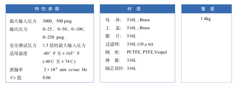 產品說明: P31不銹鋼雙極減壓閥,雙級式膜片減壓結構,輸出壓力穩定,適用于高純氣體、標準氣體、腐蝕性氣體等。